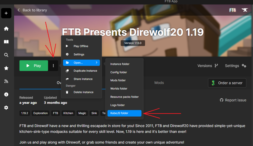 Our FTB Direwolf20 1.19.2 server was updated to latest mod pack version 1.13.0. You can download this update on FTB App or CraftersLand Launcher. Server address: dw19.craftersland.net NOTE! If you update to 1.13.0 from FTB App and you get an error on modpack loading you need to fix it by renaming some files, details below: Or, you can use CraftersLand Launcher as the error is already fixed there. Changes: Updated all configs and scripts Updated 80 mods Added 3 mods Updated Forge Updated Server API software Removed 1 vote link The End world reset Change log: Banned Items: HERE! Live Map: HERE! Daily Reward: HERE! Donate to support us: HERE! Try our launcher: HERE! Modded Madness! dw19.craftersland.net