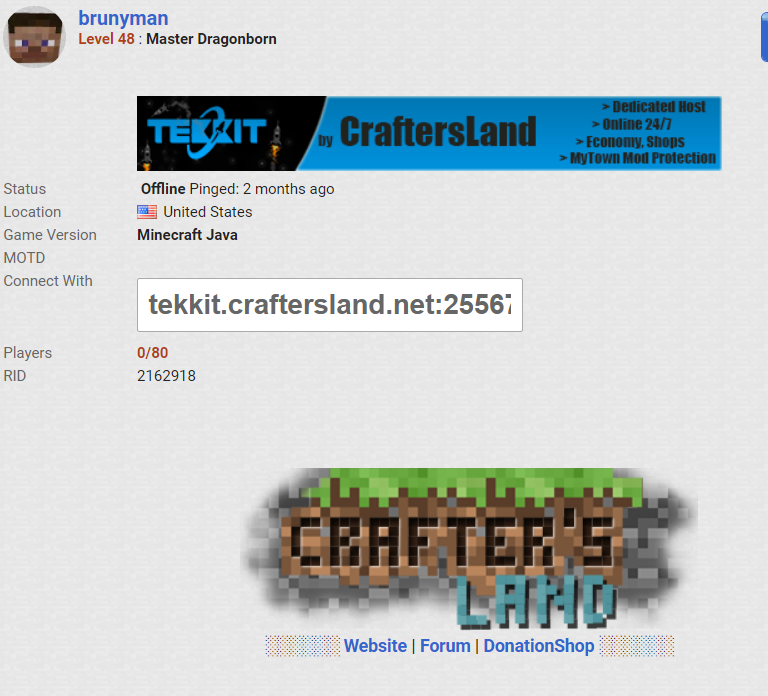 Greetings! I hope to acquire the attention of @brunyman due to the fact that he is the only one that can actually fix these. My post is about changing /adding/ fixing our vote links that we have to promote the server.(Links listed below and there corresponding problem in red) A. http://goo.gl/SbSnF (server shown as offline) B. http://goo.gl/jhoVw C. http://goo.gl/j7UliI D. http://goo.gl/srCgY (server shown as offline) E. http://goo.gl/HZe6D (server shown as offline) F. http://goo.gl/7JbZj7 (link broken) I have attached as many images of the broken links as I can. I will be happy to share them with whomever however it is pretty easy to click on the link and see. In summary on many websites the server is not even shown as online. There is only one active staff member to my knowledge, and I think it would be a step in helping this server if maintenance was done on these links. Thanks so much!