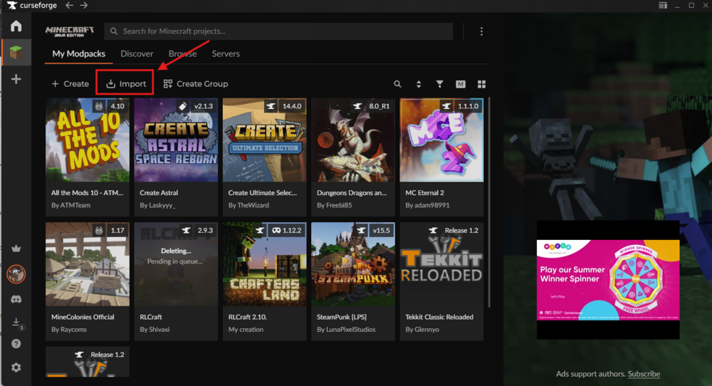 Hey all! So with the newly updated RLCraft server to 2.10 you'll have to import the provided file down below, to join the modpack however it's rather simple todo so I'll be instructing you on how to do it CL210RLC.zip (Download here and at the bottom) IP: rl.craftersland.org (Also at the bottom) First you'll download curseforge if you don't have it (Here) to download Secondly you'll want to click this button: Then with the file you've downloaded Click: Select the downloaded file you just downloaded, the launcher will download all the required files and such, then once all is done you should see the following happen: connect to the server using: rl.craftersland.org (Temporary New DNS until we get access to the cloudflare which hosts craftersland.net) CL210RLC.zip