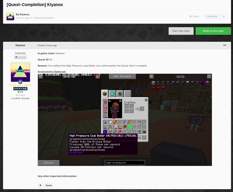 If you do not use this model, your topic will be locked. Copy and paste this model to start the process of your complaint. Title: [Complaint] (Player Name) In-Game Nickname: (One complaining about) Your Nickname (optional): Time and date: Description of what happened: (In chronological order) Screenshots or Proof: (Use www.imgur.com) List of eyewitnesses: (They should also make a post below) If your complaint has been found void, do not make another one! Thanks for your help keeping our servers clean.