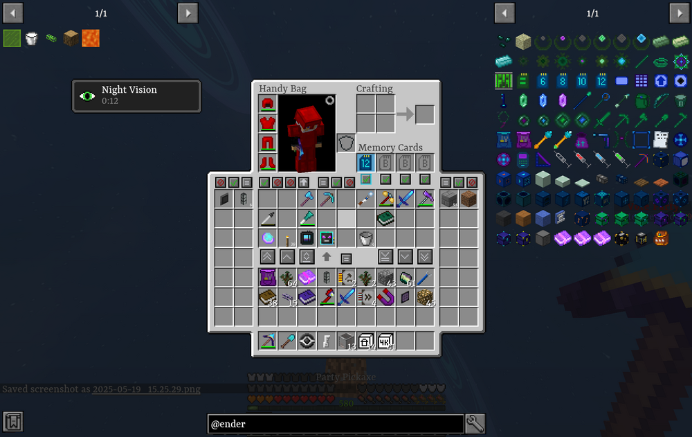 Your Name: Lord Warlock Item Name + ID + Amount: Cave Illuminator (Astral Sorcery) Coordinates: 3634/-2316/62 (roughly) Description of Issue: I just placed it down and the server crashed. When I came back it was not in the world, my inventory or in the old base I was moving it from. Screenshots (Optional):