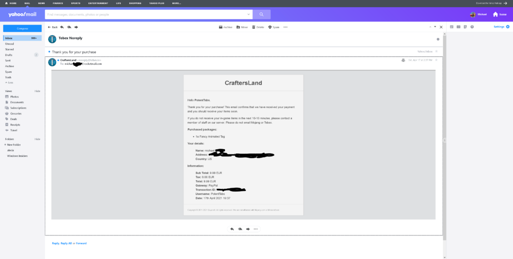 2. In game name: PotentTabs Proof of Purchase: (see attatched file) Description of Issue: Have not received the fancy animated tag, although my name did turn red. Date/Time of Purchase: 4/17/2020 19:37 Items/Rank Bought: Fancy Animated Tag Screenshots (Optional): Me typing after receiving it over chat - https://imgur.com/lL9T2GC (would not let me attach file to post) Any other important information: Thank you (edited for spelling errors)