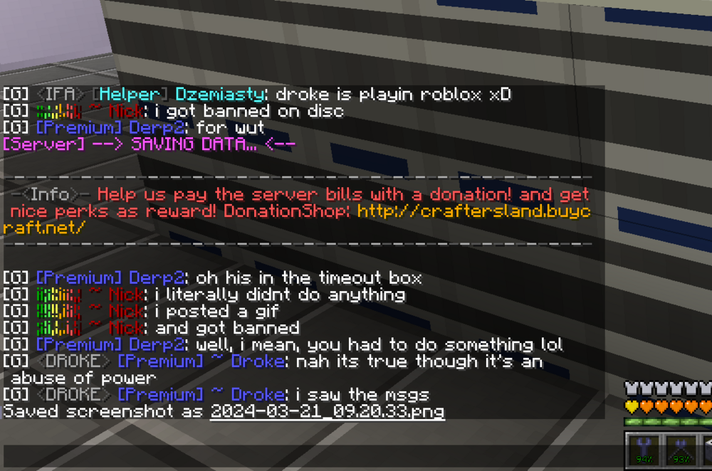 It saddens me to have to post something like this, especially since i have been a member of CraftersLand for years now and have around 2000 hours on the server platform roughly. I have played many of the modpacks offered, especially McEternal and GTNH. The behavior of Kaszanka_1234 has distasteful. Recently I was kicked and then banned shortly after on craftersland discord. I'm sure you are wondering why I was banned. Surly, it must be a good reason to ban a OG craftersland player and consistent donator to the server (hundreds of dollars worth). I am still trying to figure that out myself, as I did nothing wrong. I will be demonstrating how, on 3/21/2024 specifically, Kaszanka_1234 abused his power. I do not want him removed as a manager, as I know craftersland is shorthanded on staff these days; all I request is a formal apology from Kaszanka_1234, Kaszanka to be educated on how abuse of power can have negative consequences, and obviously unbanned from the discord (if that doesn't go without saying).