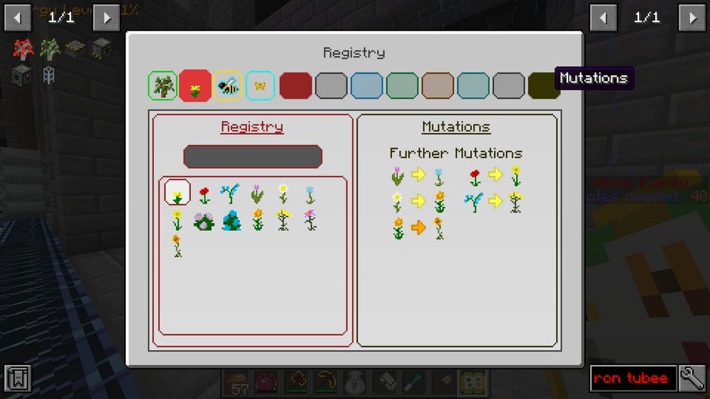 2. Update 12/22/23: Definitely late, but added final entry before Yearly wipe. Added clarification as well. Update 12/6/23: Added more entries and add clarification. Update 11/23/23: Added another entry. (Small update: Binnie's told me I'm hallucinating, apparently.) Update 11/17/23: Added another entry. Update 11/16/23: Added another entry to the date list and added clarification. Update 11/9/23: Added another entry. Update 11/3/23: Added another entry to the date list and added clarification. ----- Hi! I have a few technical issues I want addressed here with the server, 1 major and 2 of lesser degrees, but all of them relate to Forestry/Binnie's in some way. ----- First off, the main issue, which is also the reason I'm making this post in the first place. I've been repeatedly losing save data with Forestry/Binnie's at random intervals, with no apparent rhyme or reason. This includes discovered species, escritoire research, and, with the addition of Binnie's, gene sequences. Any attempted efforts to progress would end up meaningless, as data loss could happen at any moment. This makes any breeding efforts (and with Binnie's Genetics, genetic modification) unnecessarily more difficult, if not practically impossible. (I'm developing a plan as I go to mitigate this, for the time being.) This has been happening since at least September, and probably since 1.2.1 or even earlier, given how nobody seem to noticed, or if they did, didn't realized how bad it is or make an issue of it. I personally didn't make any real efforts on this until after my sequenced genes evaporated. I don't know if other mods in the modpack have similar issues like this (except for ProjectE, which is working fine as is), with save data tied to the player, so probably check them out as well. As of current writing, the times (EST Zone) when the data losses (or reverts) happened, from latest to earliest, are somewhere between or around: * Dec 7? - Dec 8 6:20 PM * Dec 5 11:00 AM - 6:45 PM (Reverted back to Dandelion and Peony again.) * Nov 30 - Dec 5 11:00 AM (Took a break from modpack, data was gone.) * Nov 23, 6:00? - 7:00PM (Reverted to just a peony.) (Addenum: It reverted back to the previous entry.) * Nov 16, 6:10?PM - Nov 17, 10:20 AM (Definitely reverted to an earlier save, as I did not analyze a Dandelion nor Peony between this entry and the previous one.) * Nov 16, 8:10AM - 6:10 PM EST * Nov 9, 5:00? - 6:00 PM EST (Seems to have reverted to an earlier save of Dandelion, Tulip, Peony & MAYBE Coneflower.) * Nov 2, Approximately 6:15 PM EST * Oct 25 - Oct 26 * Oct 18 - Oct 19 * Oct 12 - Oct 13 Screenshots attached provide an example of before and after a data loss. The first screenshot below shows discovered and researched flower species, with Dandelion's mutations, displayed within Genetics' Registry, before the Oct 12 - 13 data loss. The second screenshot shows the aftermath of the data loss. Note how few flower species are displayed. This also wiped tree, bee, butterfly, and gene data as well. There are also data losses that happened further back, but I didn't take screenshots to mark my progress and losses back then, and thus unable to pinpoint when they happened. I wish to have this issue resolved first and quickly so I, and potentially others in the future, can finally make some real progress. ----- So, to the second issue. This specifically deals with Extra Trees' drinking glasses (And NOT Core's Bottle). If I attempt to fill any glass with the sufficient amount of fluid, it will appear filled for a fraction of a second before the fluid disappears. The fluid is TECHNICALLY still there, which can be confirmed by checking the NBT count before and after filling the glass. It's still possible to "drink" from the glass, and it will return the NBT count back to one, but it won't give any effect. You can "drink" the glass further, but nothing more will happen. I did test for this in singleplayer and nothing of the above happened, which led to me believe some server settings are interfering with the glasses. My only wild guesses is that some TPS preserving or even somehow anti-grief measures are causing this, and I don't know what else could cause this to happen. I would like this to be resolved after the first issue, or at the very least done in parallel. ----- Final issue, but it is so insignificant I wouldn't really be too bothered if you left it alone, but I think it is worth saying. There's an improper interaction with Genetics' Sequencer and the server's own chunk-loader plugin. If I leave the loaded chunk, the Sequencer will finish its current operation, but will not start its next until I physically return the chunk. This will happen every time I leave the chunk and don't return until after the current operation has finished. I have tested Railcraft's Personal Worldspike and it actually works nicely with the Sequencer, although there's a tendency for the Worldspike to explode, which might be unrelated. Still, would be nice for this to be worked on, but only AFTER the previous 2 issues are addressed. ----- I hope to get a response soon, even if its an explanation why a specific issue cannot be worked on. For contact, KarnCanine in Discord and Karnva_R_Evo ingame. And I will, if asked, provide further relevant screenshots and answer questions to the best of my ability. Cheers, and thank you.
