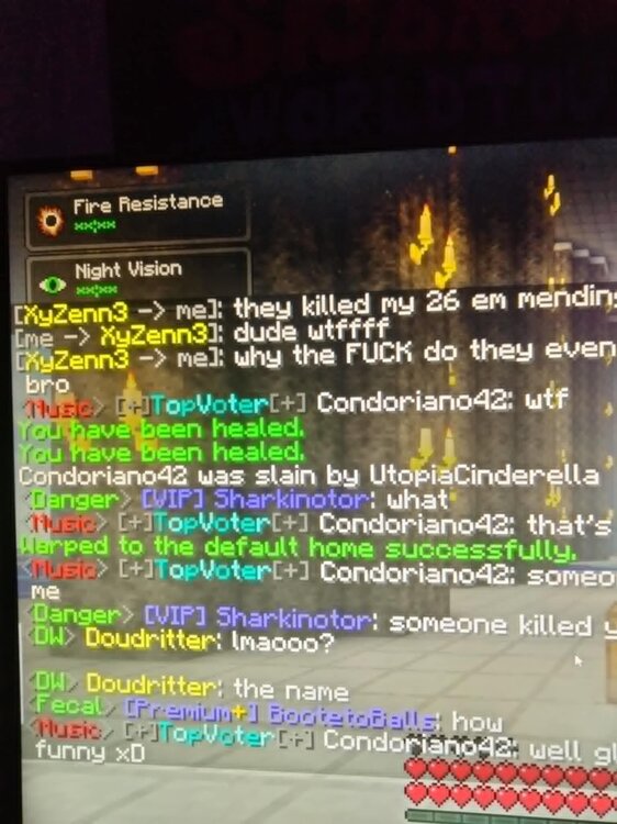 I was claim killed by a player username UtopiaCinderella. They were clearly an alt of another account but unfortunately I have no evidence as to who's alt it was. The incident occured approx between 1:30 a.m. and 2 a.m. midwest american time. I am requesting an inventory rollback as I was killed on my claim and all my stuff was taken. I will provide screenshots as evidence. Thank you as always for your time. I would make a list of everything lost but it was too many to include and I think it would be easiest to simply do an inventory rollback. Furthermore they announced in the chat that they will be back every so often to terrorize me and the server. Something about retribution for creative ranks. Anyway I will provide pictures below. -185, 78, 1172 are my base coordinates. Thank you for your time and patience regarding the multiple issues.